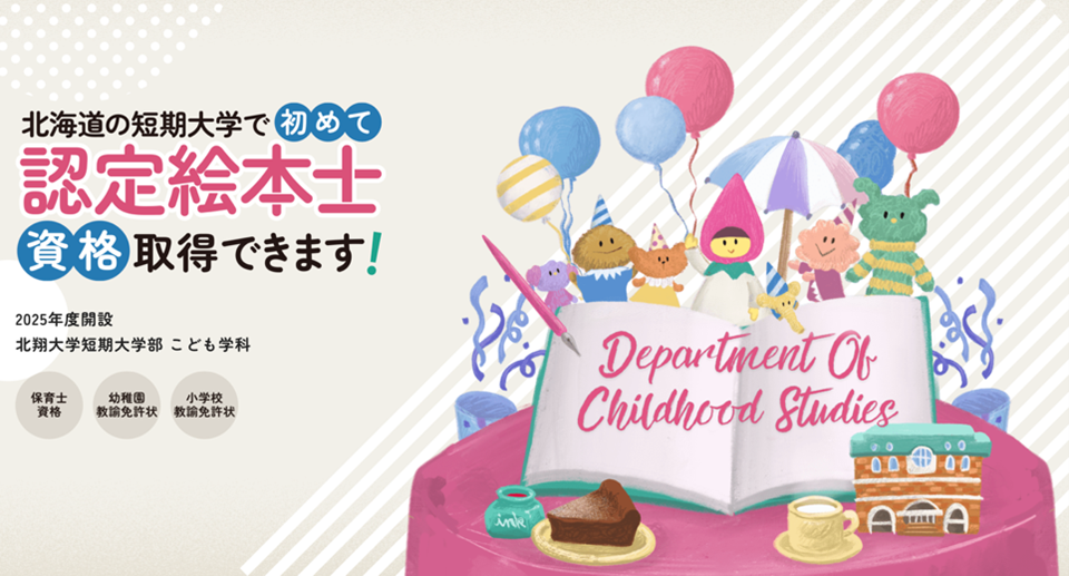 こども読書活動を力強く推し進めていくために、養成カリキュラムに基づく絵本に関する「知識」「技能」「感性」を備えた、絵本のスペシャリストです。絵本専門士委員会(事務局:国立青少年教育振興機構)から認定された機関のみが開設できる講座が、認定絵本士養成講座です。こども学科では、令和7年度に第1期生となる37名の認定絵本士を輩出しています。