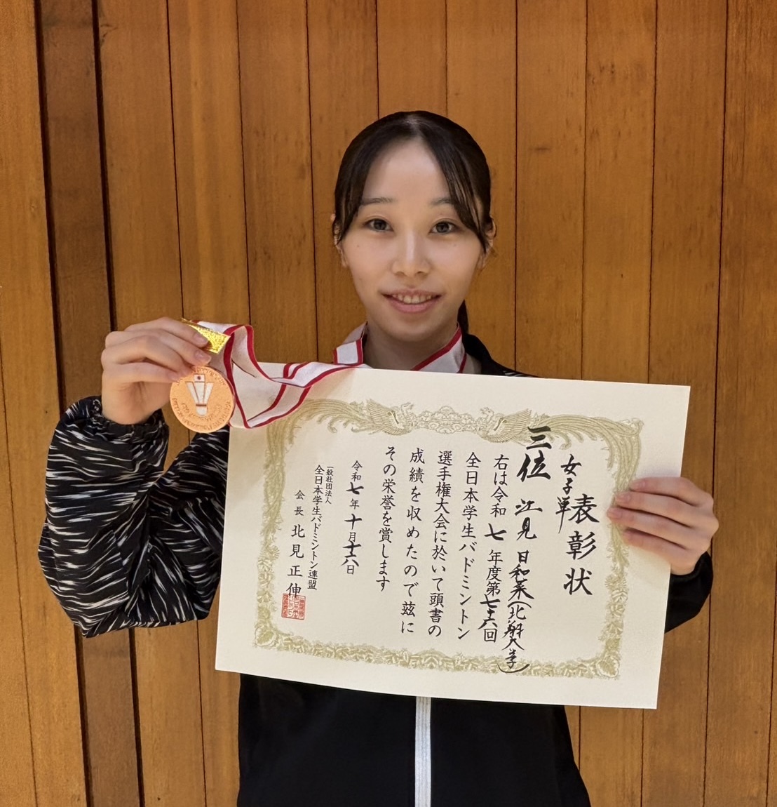 【女子シングルス3位】江見日和菜(スポーツ教育3年)