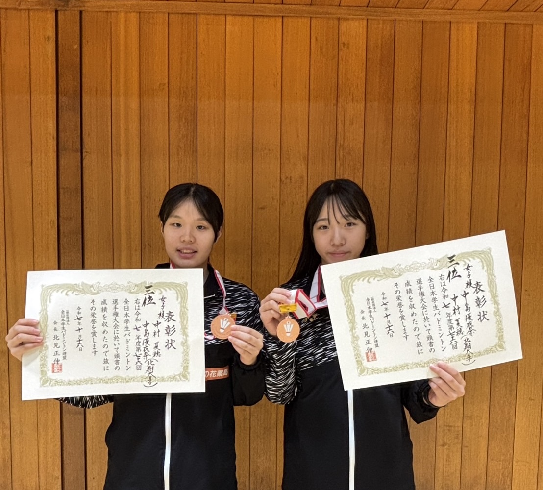 【女子ダブルス3位】中島優衣奈(スポーツ教育1年)・中村夏穂(スポーツ教育1年)