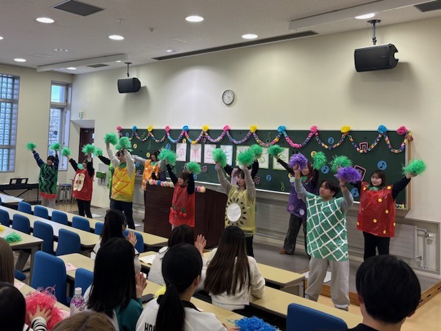 本会は、今年度卒業を迎える2年生のために、1年生が中心となって企画したものです。「保育内容演習Ⅱ」などの授業を通して、準備や練習を重ねてきました。