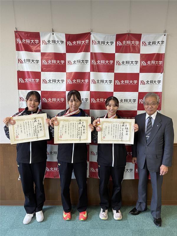 本学史上初の女子シングルスでのメダル獲得、1年生ペアでのメダル獲得の偉業を報告しました。
