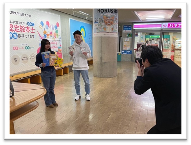 2025年11月11日(火)、本校にて、本学の学生2名が北海道新聞社江別支局様の取材を受けました。取材では、認定絵本士の称号を取得した2名が、現在開催中の『第1回北翔こども絵本感想コンクール』について解説をしています。また、絵本に関する学修を通して身についた力を活かし、お勧めの絵本を紹介しました。