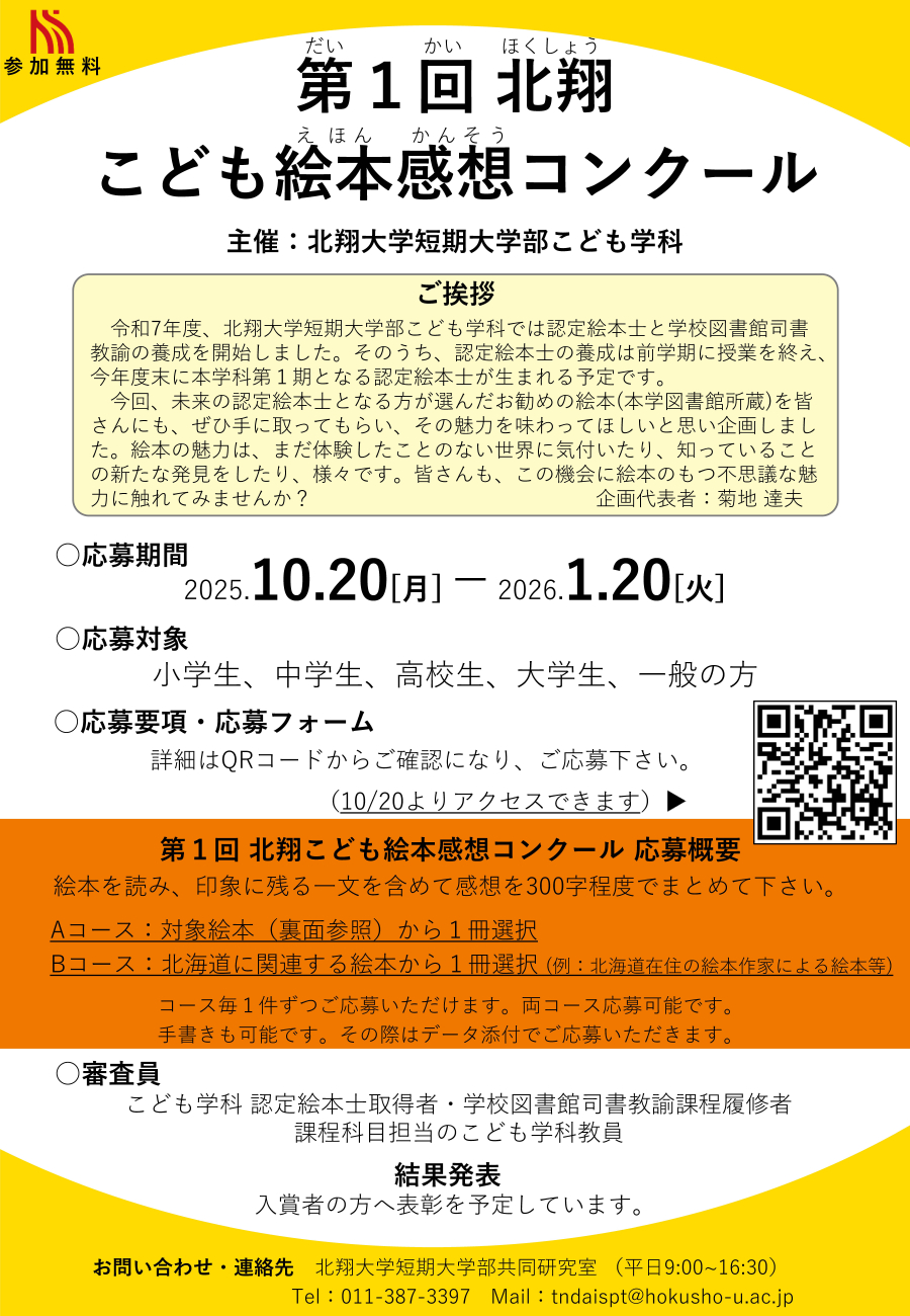 『第1回北翔こども絵本感想コンクール』開催中です!