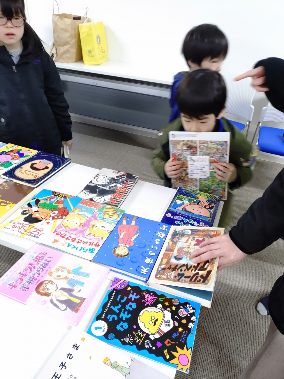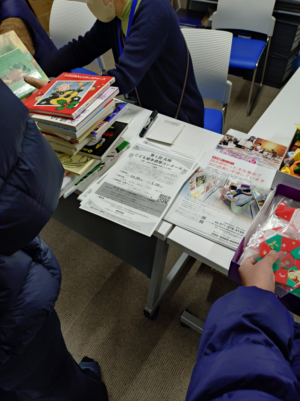えほんのばくりっこ】会(江別市)を開催しました。この企画は、令和2年度に実施した市民ワークショップから出たアイデアのひとつで、「資源循環」をテーマに、施設利用者・職員、近隣住民をはじめとする市民等がつながる取り組みを通じ「共生のまち」を実現するための地域交流事業として始めたものです。主催は、北海道ブックシェアリング(江別市大麻東町)の協力を得て、日本介護事業団ココルクえべつが実施しています。