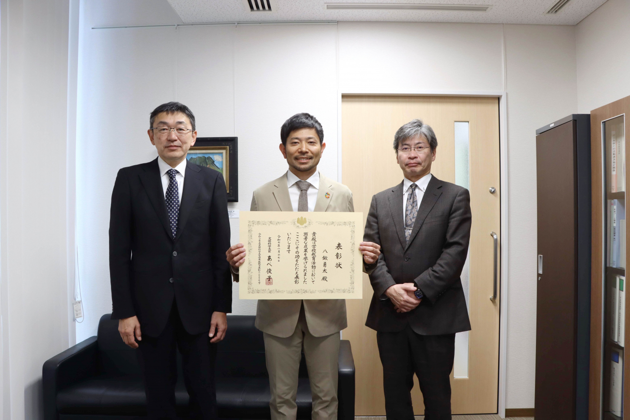 今回の受賞は、文科省が定める「三 体育、保健、給食指導」での実践分野において八鍬さんの功績が高く評価されたことによるものです。