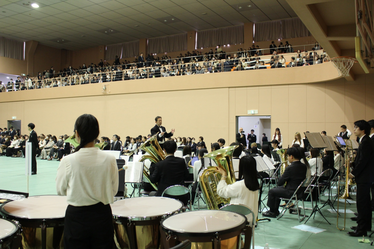 なお、式場に来られないご家族のために、芸術学科の学生によるYouTubeでのライブ配信を行い、教育学科音楽コースと北翔大学吹奏楽団有志による大演奏で、入学式を盛り上げました。