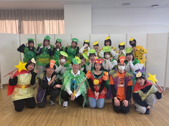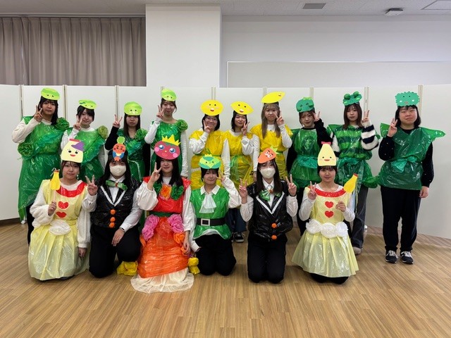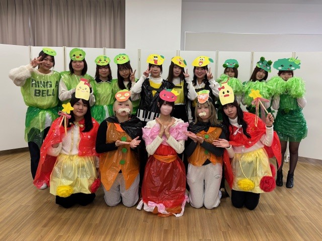こども学科1年生は、「こどもと表現」の授業で幼児向けオペレッタ《やさいのパーティー》に取り組みました。