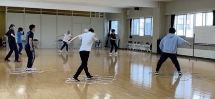 生涯スポーツ学部主催で道内の教員を対象に、HIPHOPの音楽とDJ機能のついた無料アプリ「ラップムシ」(成瀬つばささん製作)を用いたワークショップを開催しました。2025年6月4日(土)と8月9日(土)の2回実施し、道内各地から参加者が集まりました。講師は北翔大学生涯スポーツ学部で「生涯スポーツ指導演習(ダンス)」を担当する非常勤講師の長谷川由樹先生と増山尚美(教授)です。グーパー、ケンケンなどの足の運びに慣れてから、参加者同士で「ラップムシ」を使い即興で曲をアレンジしたりレコードのスクラッチや「Yo!」で盛り上げたり、ダンサー・DJ・ジャッジ、オーディエンスなど役割を分担し楽しく交流しました。