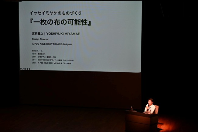 宮前さんはISSEY MIYAKEに入社し、A-POC(A Piece of Cloth)の企画チームに参加されたあと、2011年より4代目のイッセイ・ミヤケのデザイナーとしてパリコレクションを舞台に活躍され、現在はA-POC ABLE ISSEY MIYAKEのデザインチームを率いて、様々なアーティストやプロダクトデザイナーと協業しながら、新たなファッションの可能性を探求されております。そのような活動をされている宮前さんが,どうしてファッションを目指したのか、そして今どういうことを考えているのか、本学の学生、これからファッションの世界を志す学生や高校生、アートやファッションに関心のある一般の参加者に向けてお話して頂きました。