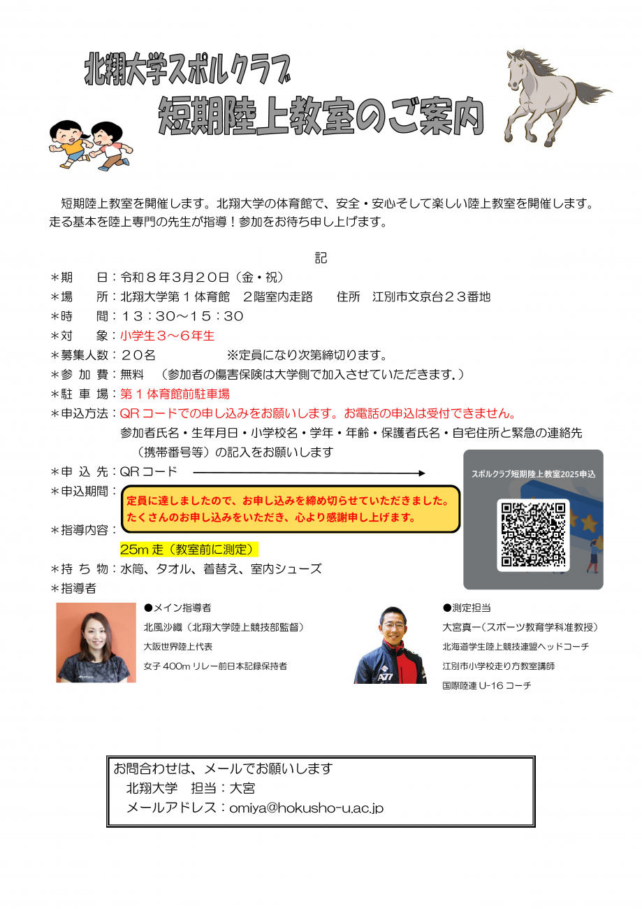 2025年度スポルクラブ短期陸上教室のご案内(2/20申込は終了しました。)